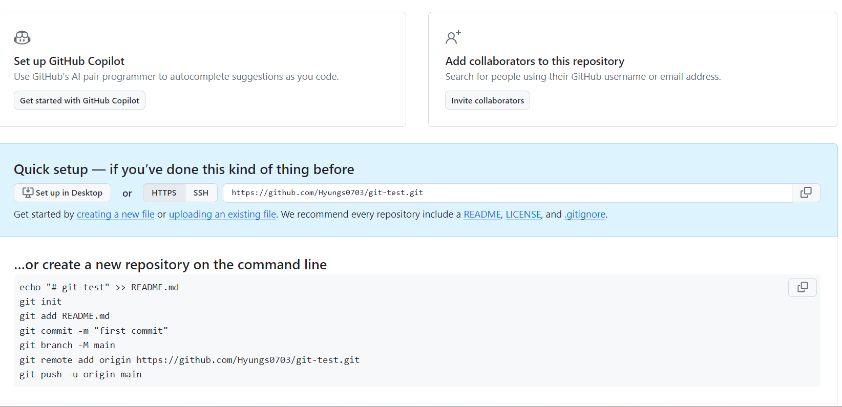 Git clone을 사용하여 Test-git의 파일들을 Git-test로 추가하기