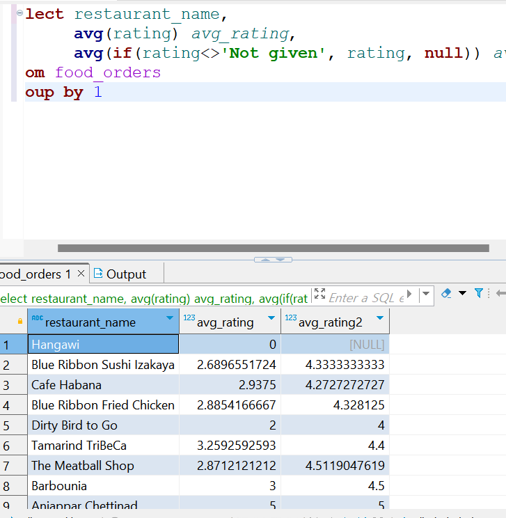 avg(if(rating<>'Not given', rating, null)) avg_rating2