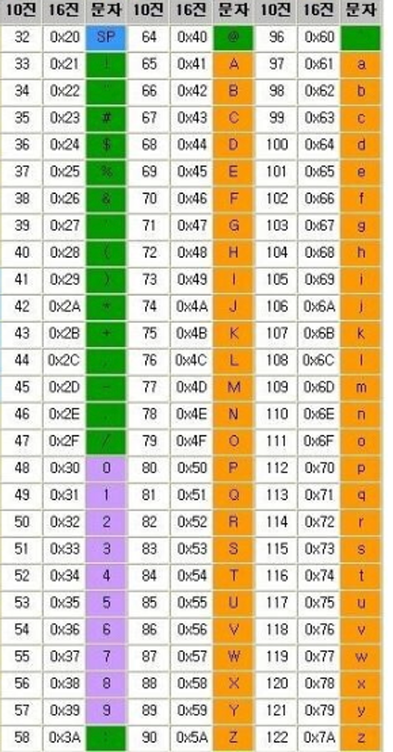 아스키 코드 표