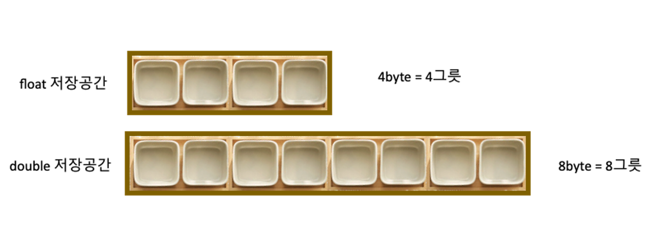 실수형 변수 : flaot, double