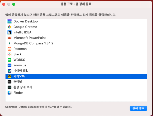- OS에서 응용프로그램 조회하여 강제 종료 할 수 있는 기능도 커널 프로세스의 역할