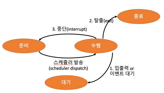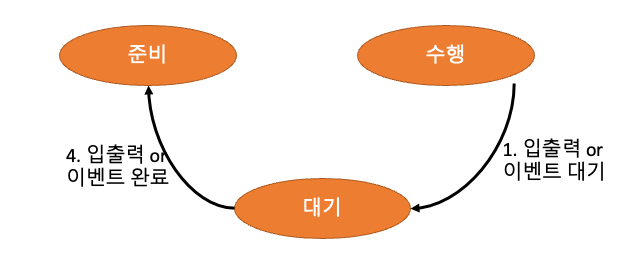 - 입출력/이벤트가 필요하면 대기상태