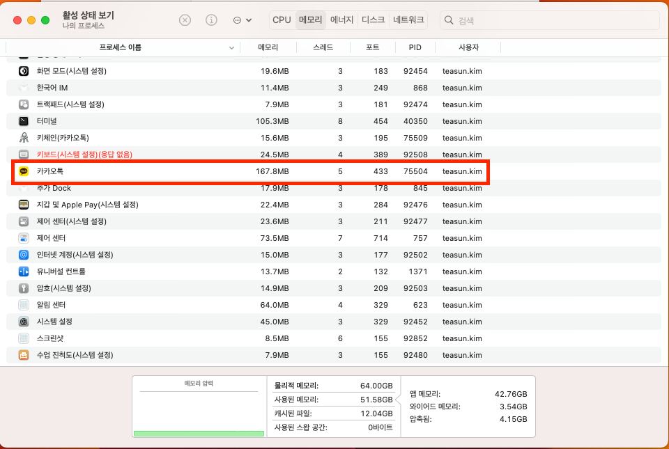 커널 프로세스의 메모리