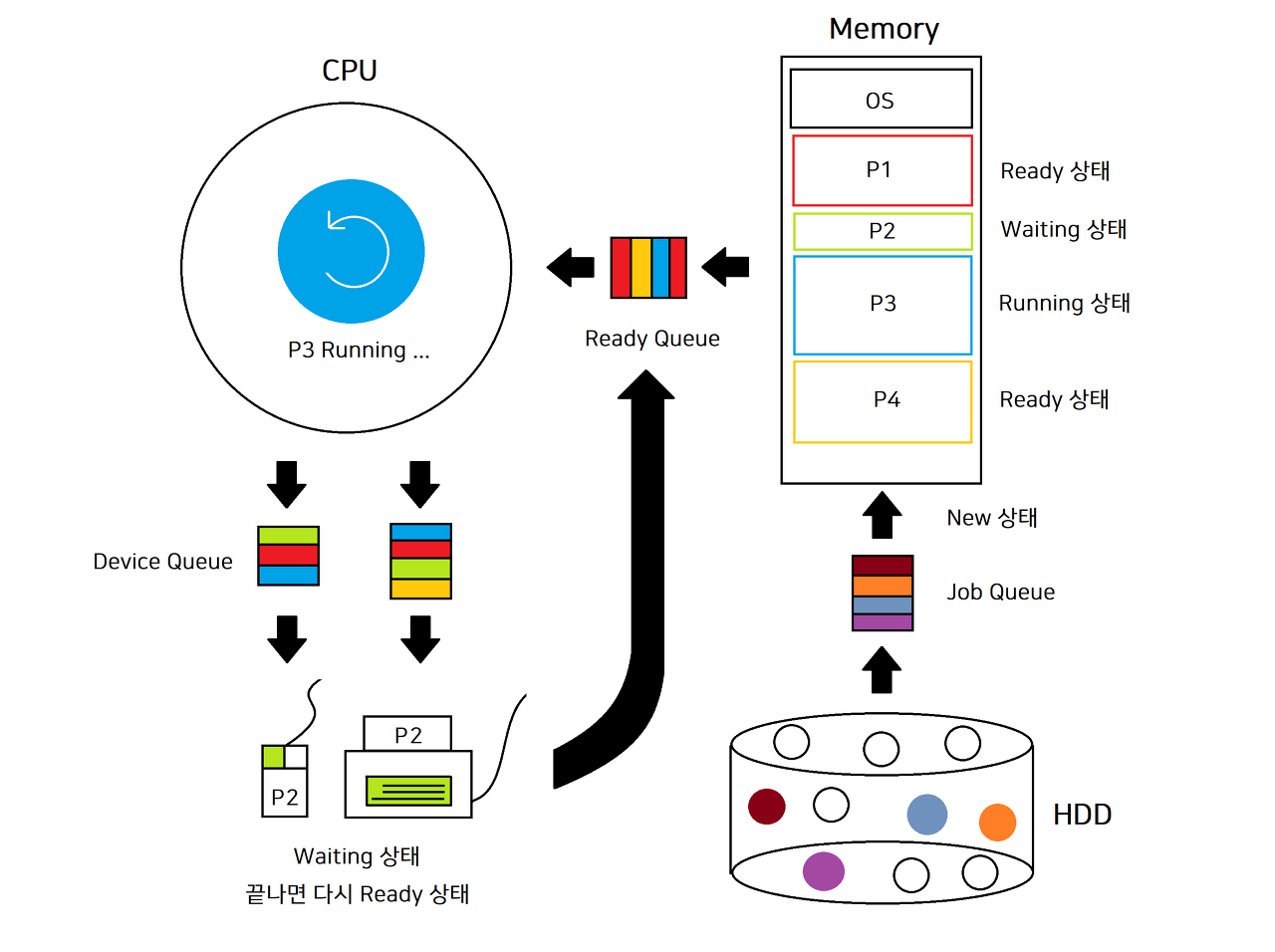 - 🟠은 프로세스들의 상태를 의미하고