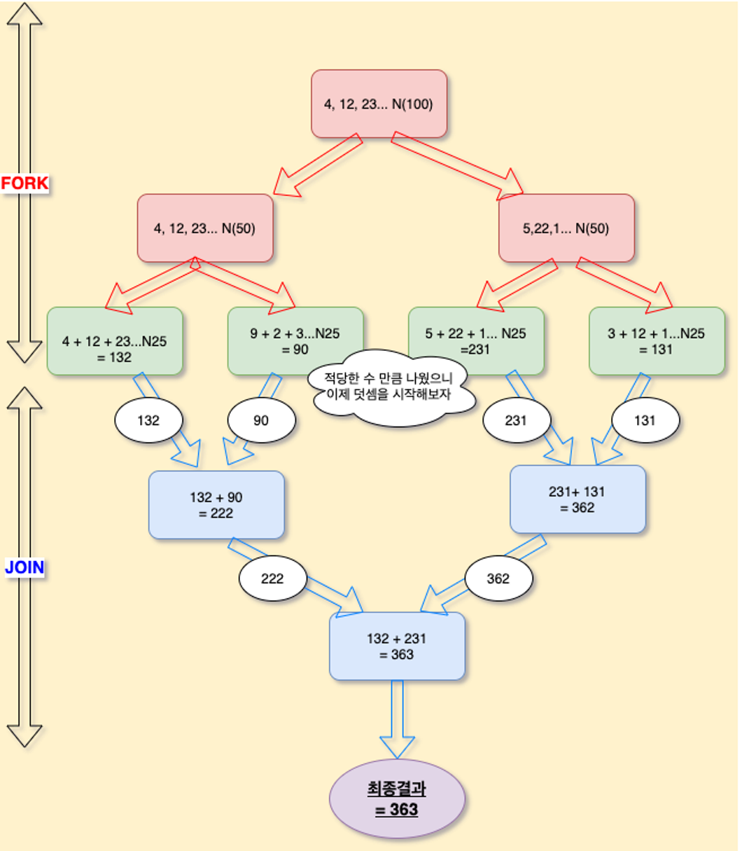- 서브 데이터는 "멀티 코어의 수" 만큼 쪼개어 각각의 데이터들을 분리된 쓰레드에서 병렬처리 한다.