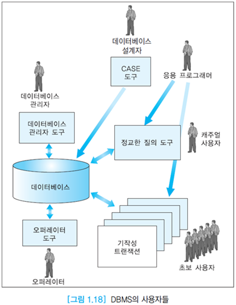 - 데이터베이스를 정의 ,질의어 지원, 리포트를 생성 하는 등 작업을 수행하는 소프트웨어