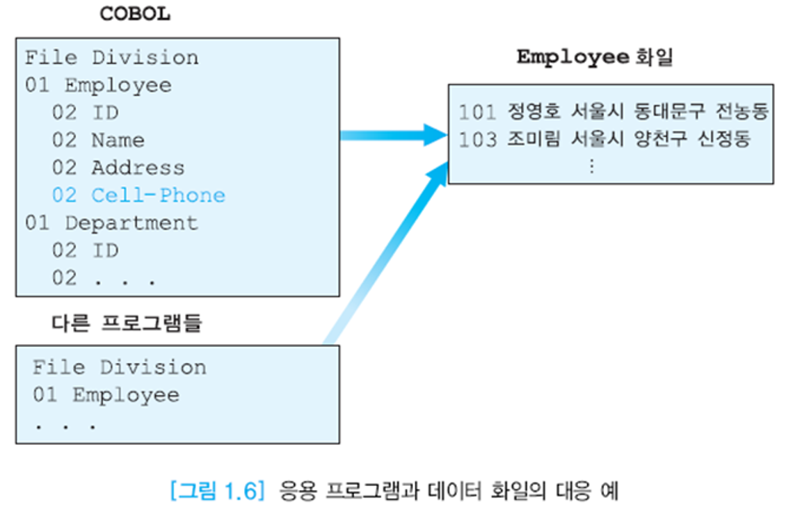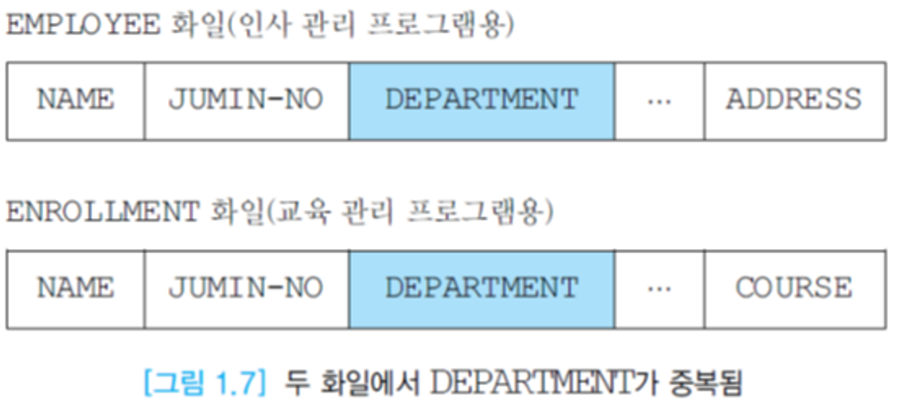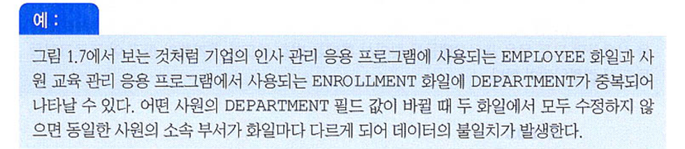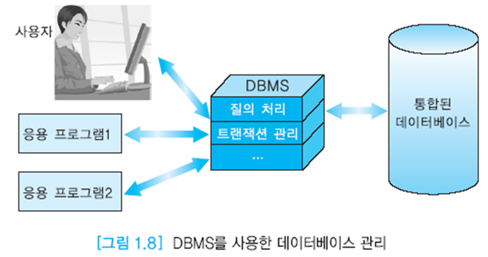 - 데이터베이스 : 조직체의 응용 시스템들이 공유해서 사용하는 운영 데이터들이 구조적으로 통합되어 있다.