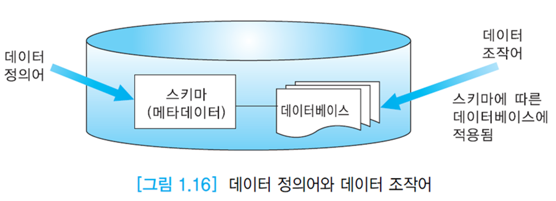 - 데이터베이스는 운영 데이터 뿐만 아닌 그 데이터에 관한 설명까지 포함된다.