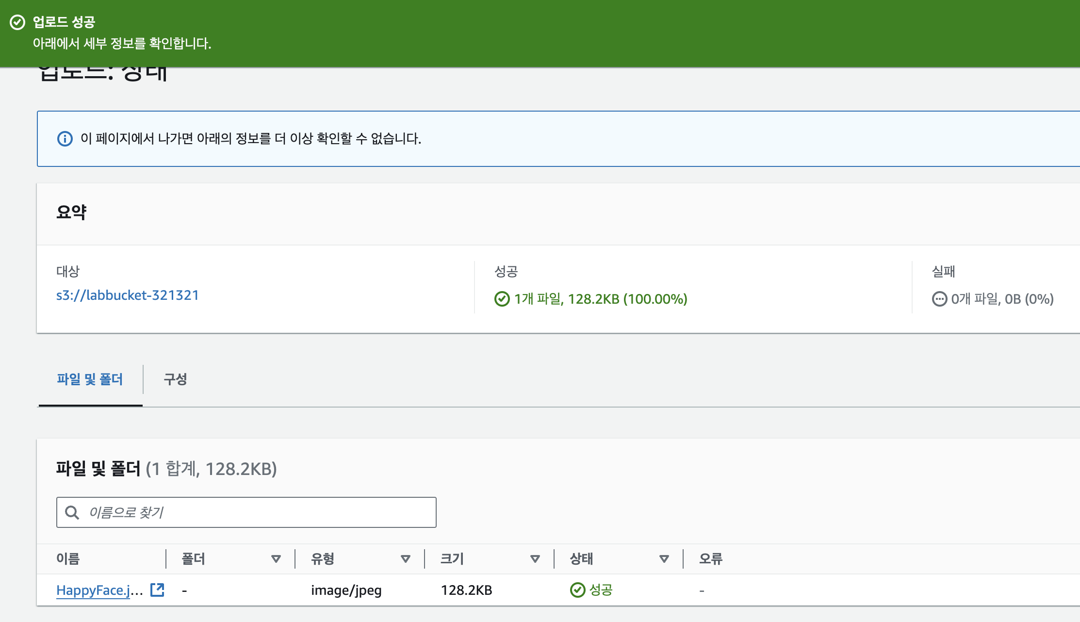 실습 1: AWS 관리 콘솔 및 AWS CLI 살펴보기 및 사용(과제 2, 3: AWS 관리 콘솔을 사용하여 Amazon S3 버킷 생성, 이미지 업로드)