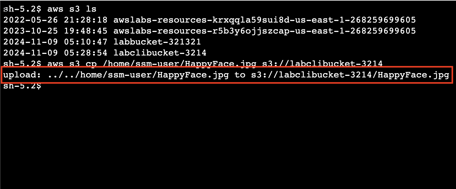 실습 1: AWS 관리 콘솔 및 AWS CLI 살펴보기 및 사용(과제 4: AWS CLI를 사용하여 Amazon S3 버킷을 생성한 후 객체 업로드)