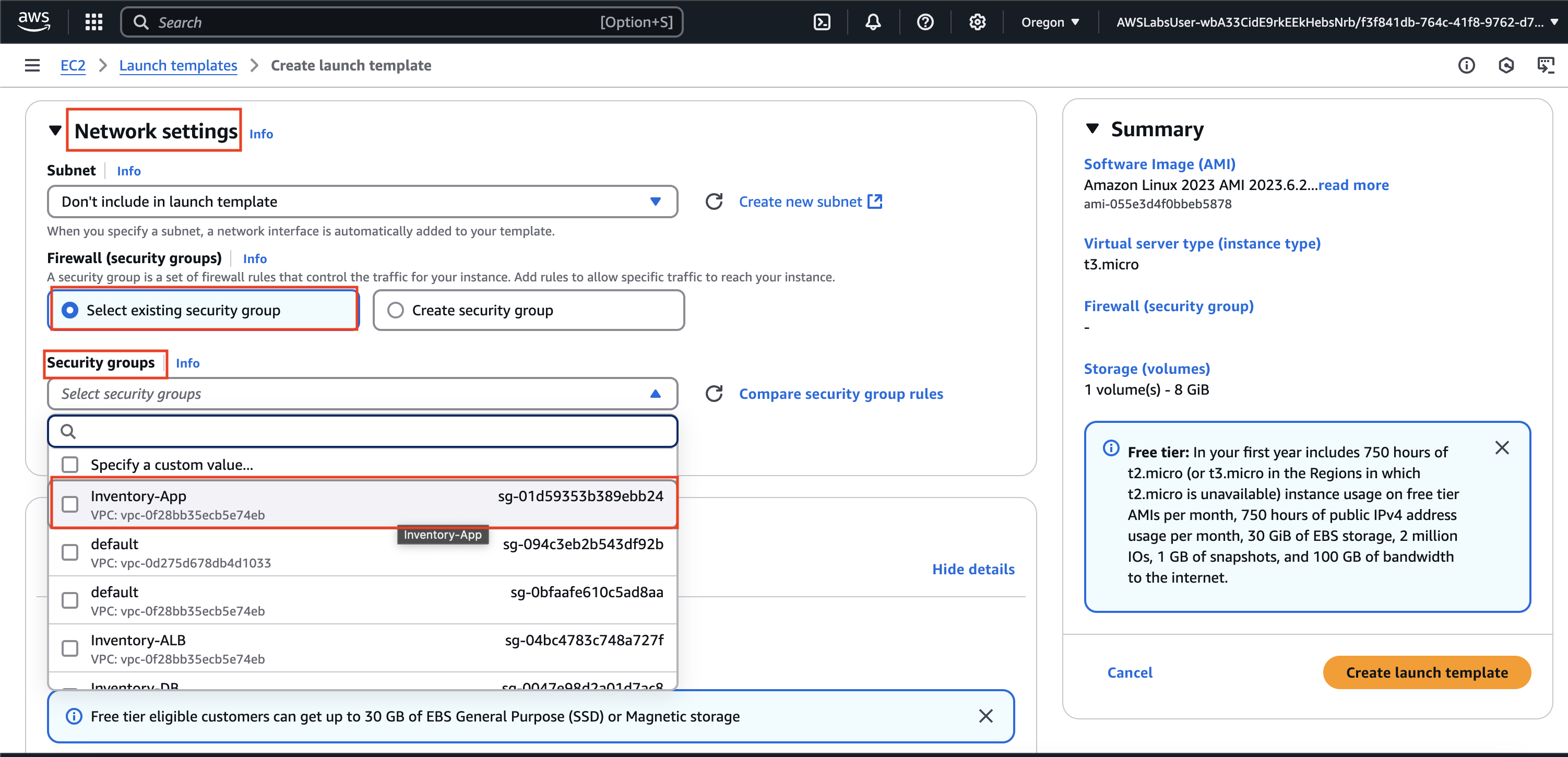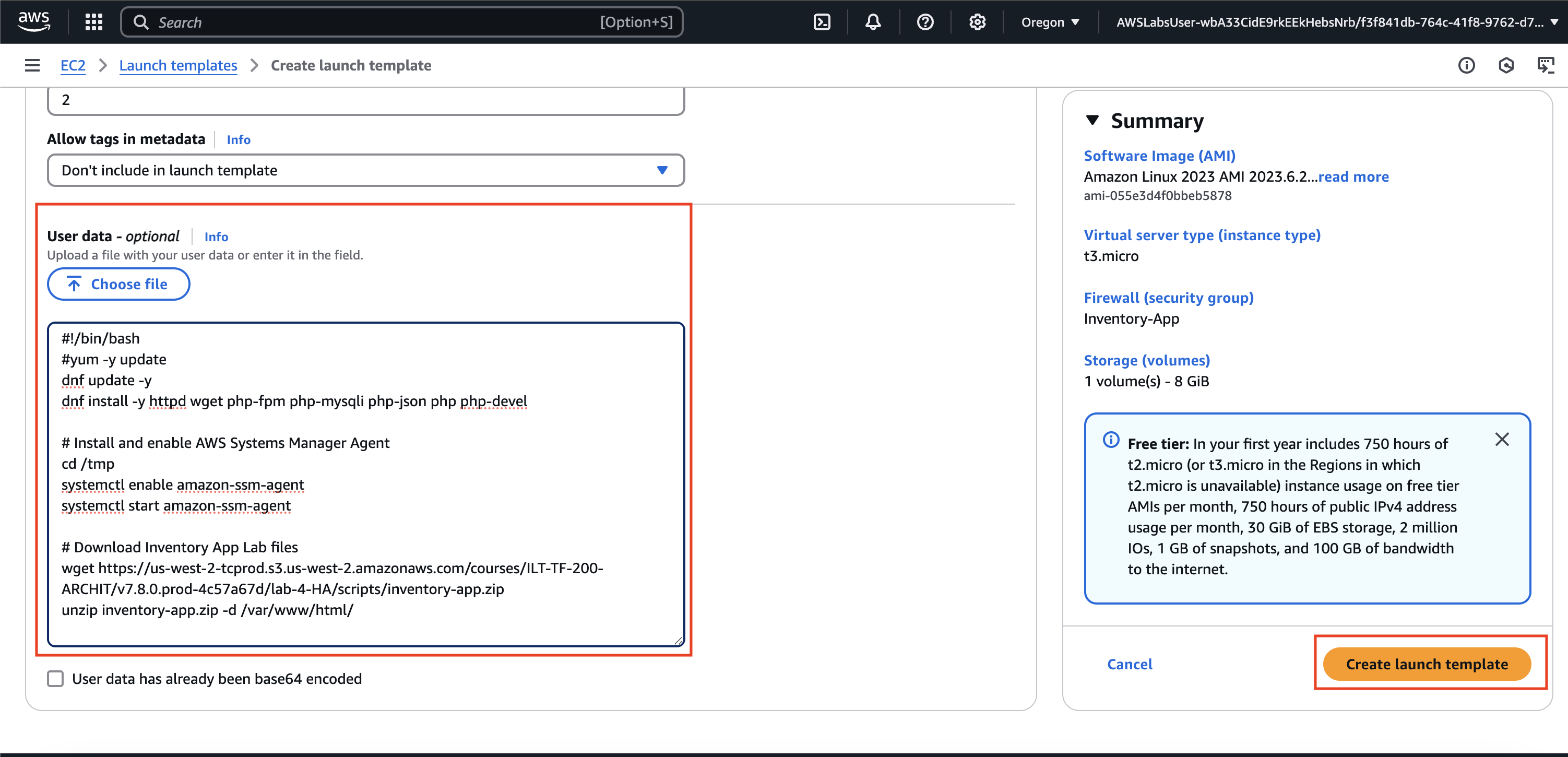 실습 4: Amazon VPC에서 고가용성 구성(과제 2: 시작 템플릿 생성)